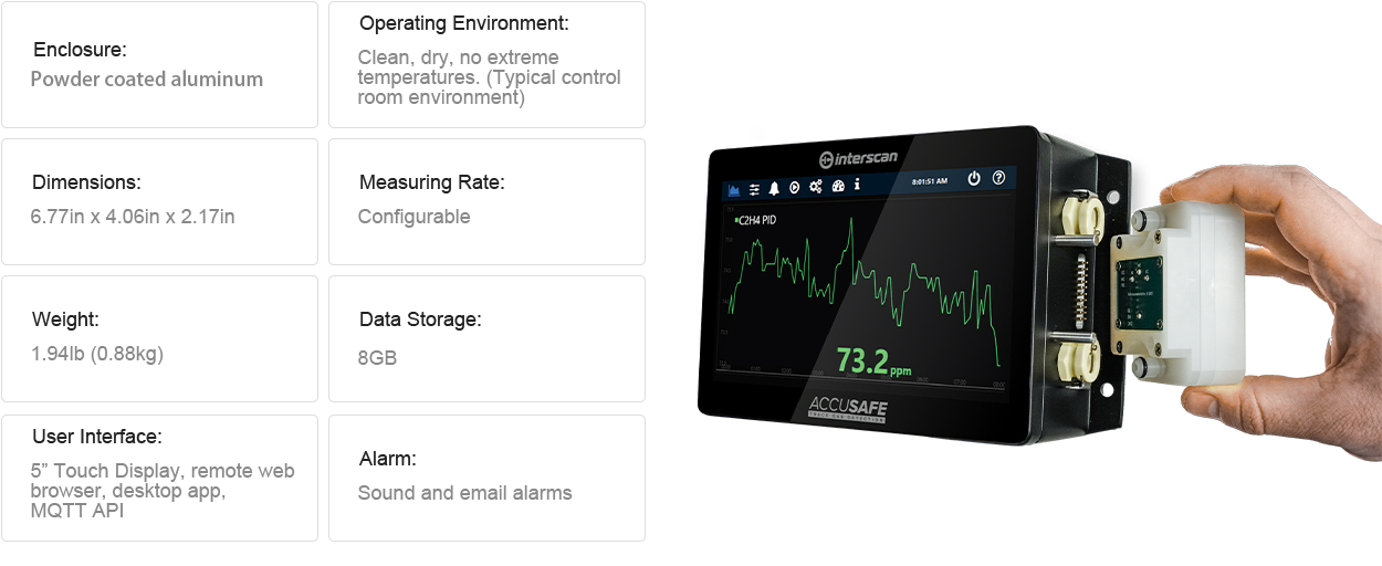 Sensor Unit with a concentration display and alarm indicators can be used as a standalone gas detector.