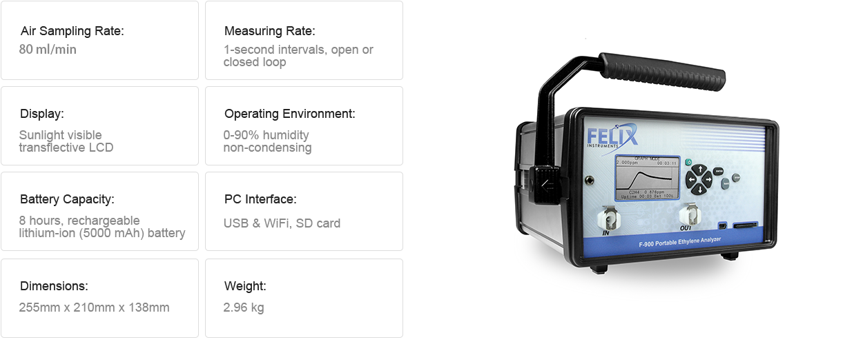 Measures flux from a single fruit and head-space accumulation for analysis of small-volume samples or fruits with low ethylene emission rates.