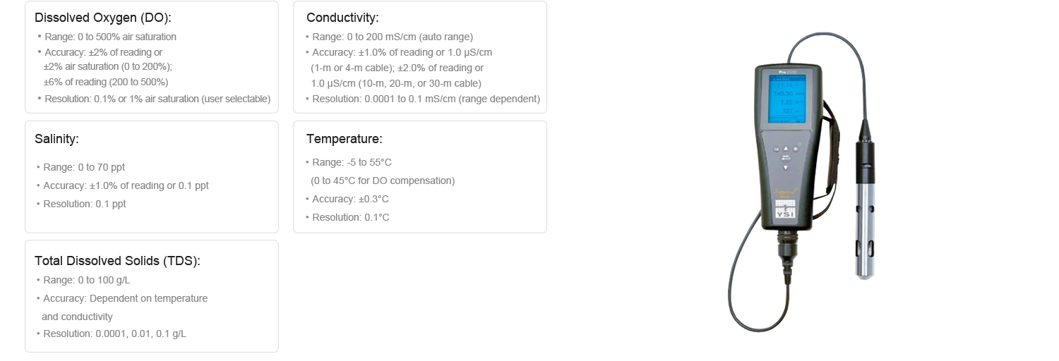 User-replaceable cables and sensors. Choose either polarographic or galvanic DO. Conductivity sensor built into cable.