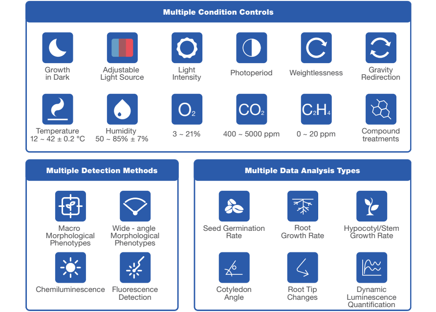 Multiple environmental condition control, and can be quickly changed according to the settings, phenotype detection under complex treatment conditions.