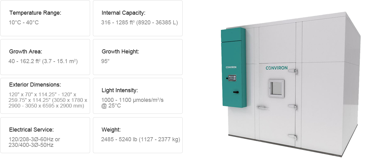 Unique top-down airflow pattern uniformly disperses conditioned air, ensuring consistent plant canopy temperatures throughout the chamber.